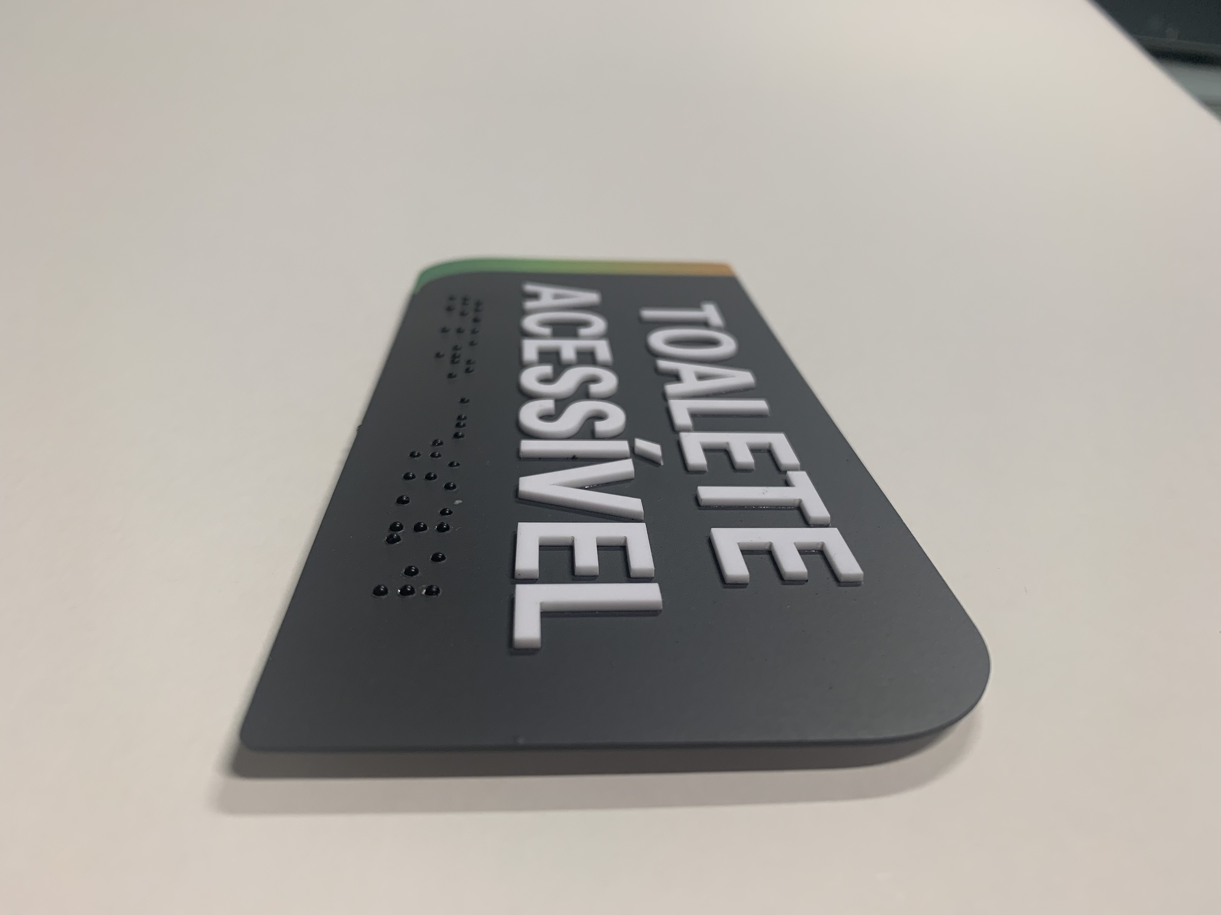 As placas de sinalização contêm textos e pictogramas em alto relevo, facilitando o reconhecimento das pessoas cegas. As placas apresentam as informações traduzidas para o código de braile, de maneira que as pessoas alfabetizadas nessa linguagem possam fazer a leitura.